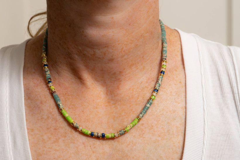 Green Hexagon Bee Necklace