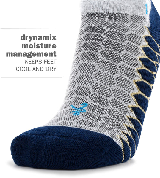 - Keeps feet cool and dry with Balega’s proprietary Drynamix ® moisture wicking fibers, plus specially constructed, reinforced microfiber mesh ventilation panels.