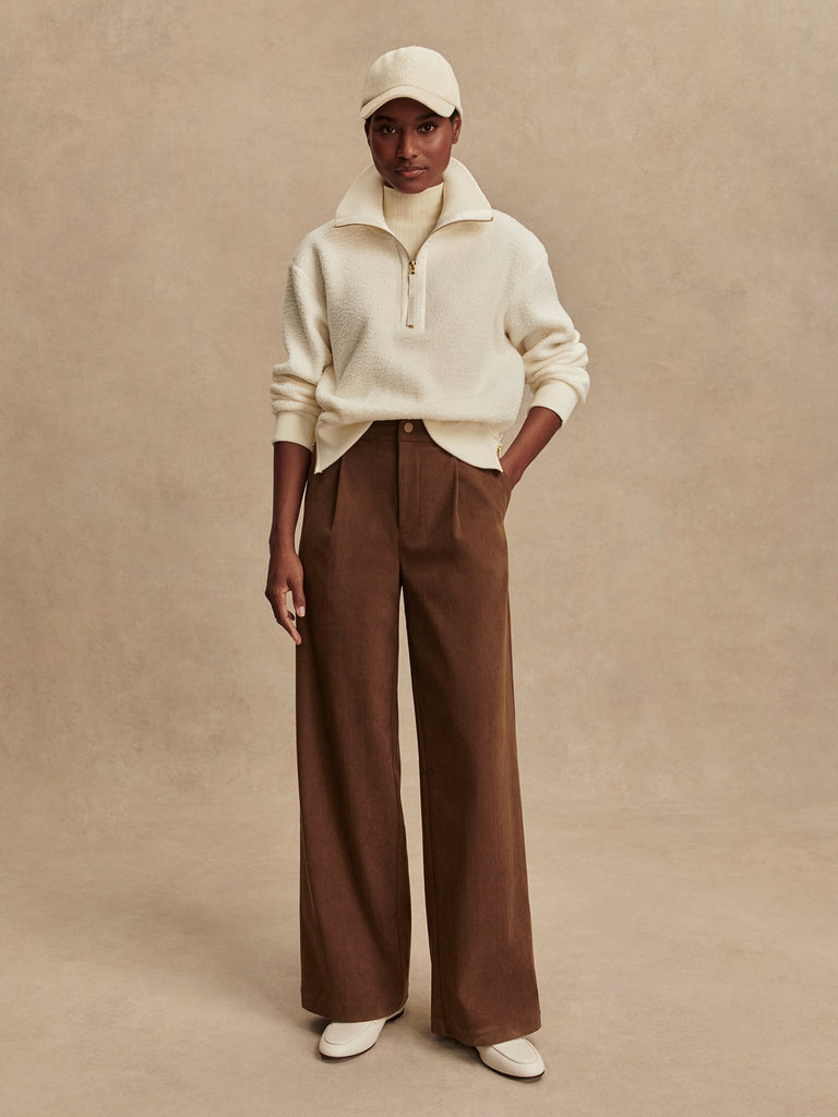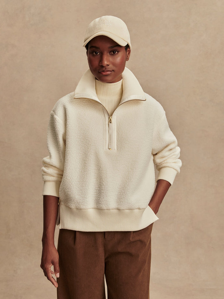 Designed for cool weather layering, the Roselle is a relaxed yet refined half-zip fleece.
